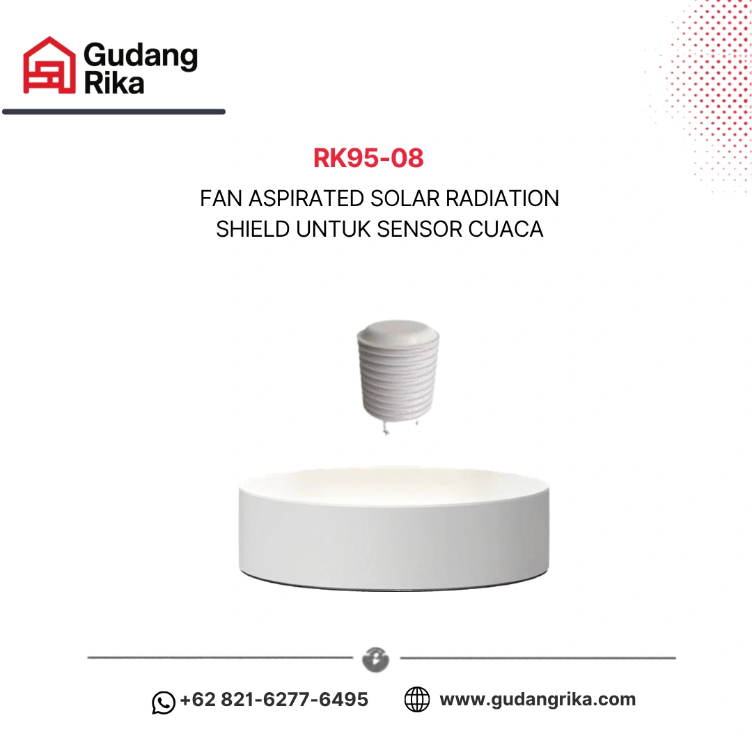 Rika RK95-08 adalah fan aspirated solar radiation shield yang dirancang untuk melindungi sensor cuaca seperti suhu, kelembaban, dan tekanan udara dari pengaruh radiasi matahari langsung serta panas lingkungan. Berbeda dengan radiation shield biasa (pasif), perangkat ini dilengkapi kipas (fan) aktif yang secara kontinu mengalirkan udara melalui ruang sensor, sehingga menghasilkan pengukuran yang jauh lebih akurat dan stabil.