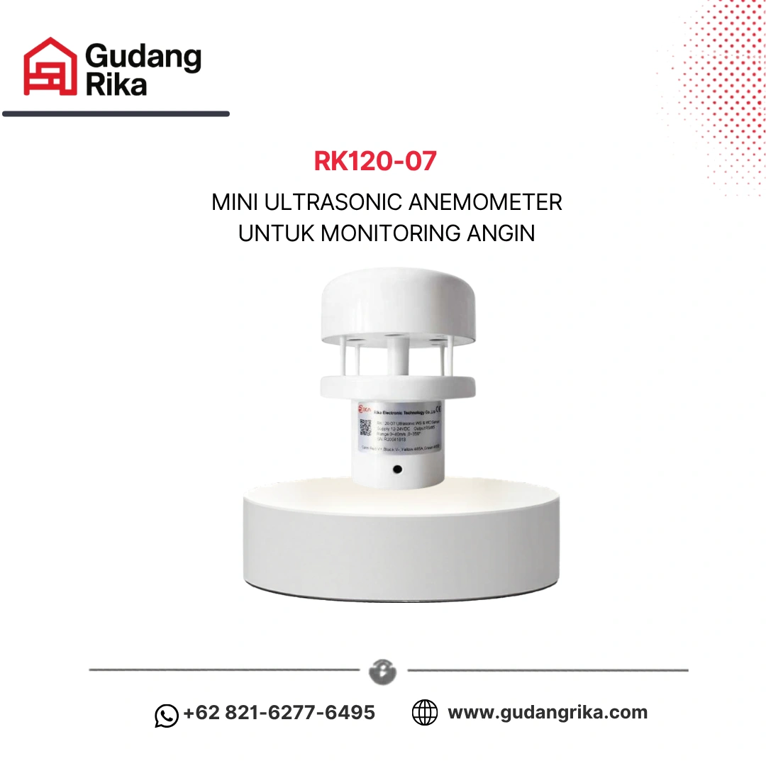 Mini Ultrasonic Anemometer untuk Monitoring Angin Rika RK120-07 merupakan sensor angin berukuran ringkas yang dirancang untuk mengukur kecepatan dan arah angin menggunakan teknologi ultrasonik. Teknologi ini memungkinkan pengukuran angin tanpa menggunakan komponen mekanis yang bergerak sehingga menghasilkan data yang lebih stabil, respons cepat, serta meminimalkan kebutuhan perawatan.